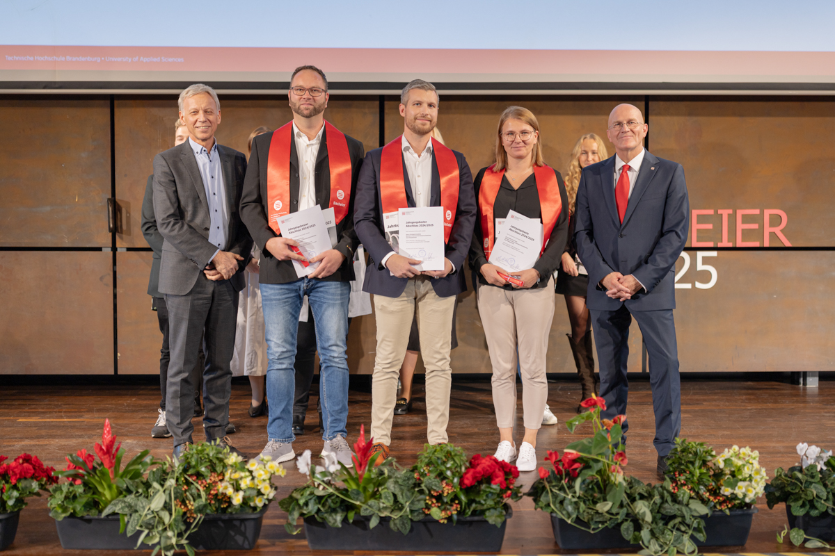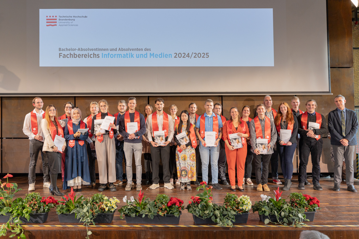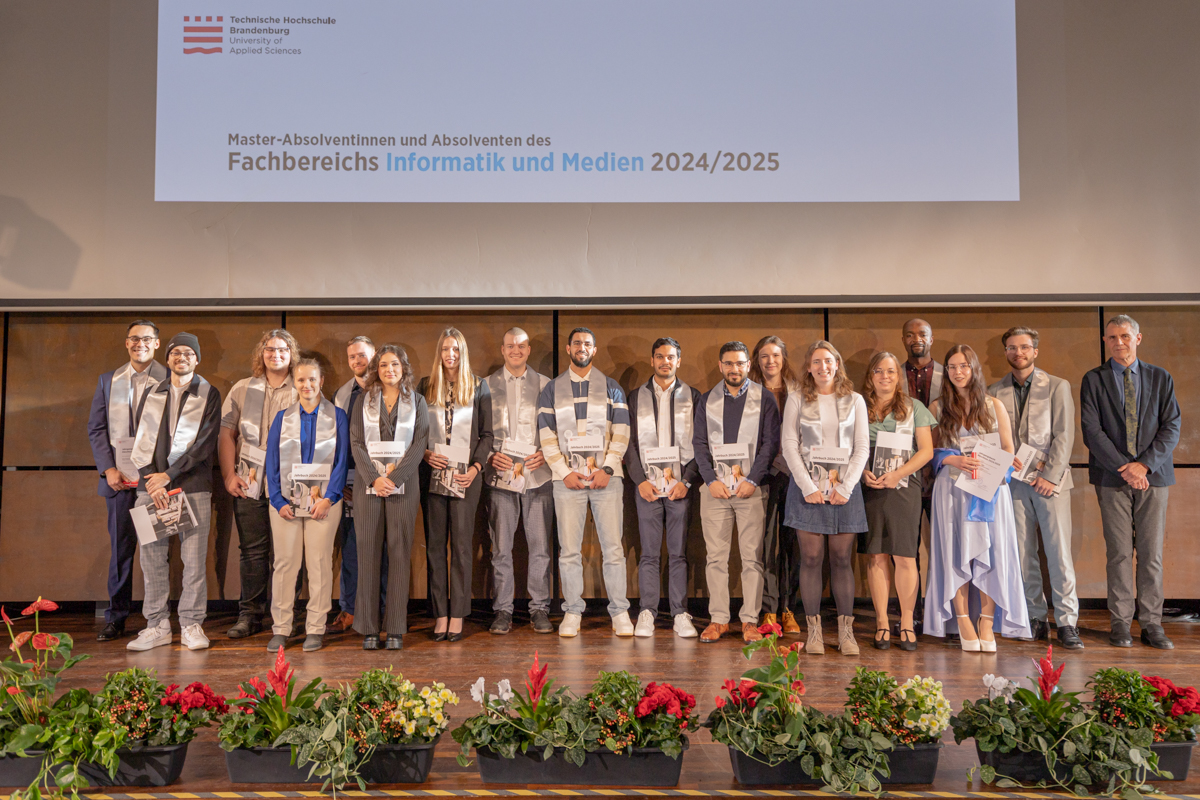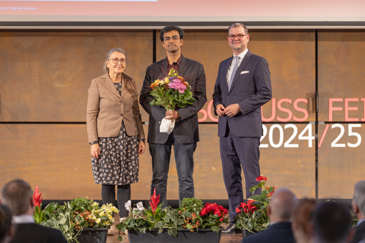 Gemeinsam mit den Dekanen der drei Fachbereiche Informatik und Medien, Technik sowie Wirtschaft gratulierte der Präsident den Absolventinnen und Absolventen zu ihrem erfolgreichen Studienabschluss. Die Dekane zeichneten überdies die 51 Jahrgangsbesten in ihren Fachbereichen aus. Im Rahmen der Abschlussfeier wurde außerdem der DAAD-Preis für hervorragende Leistungen internationaler Studierender an Ayush Kumar aus Indien, Masterabsolvent im Studiengang Wirtschaftsinformatik, verliehen.