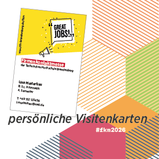 save the date → Die nächste Firmenkontaktmesse an der Technischen Hochschule Brandenburg findet am 10. Juni 2026, 10 - 15 Uhr im Audimax statt.