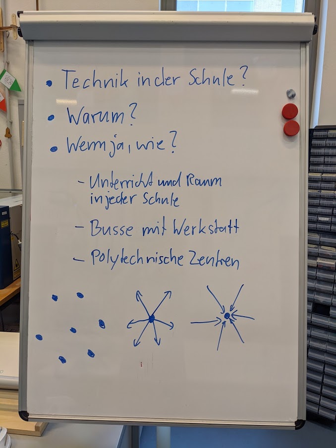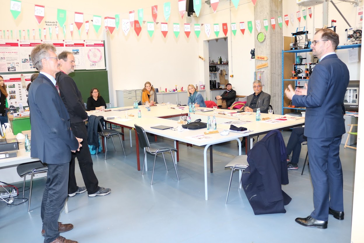 Im Anschluss diskutierten wir unser zentrales Anliegen, schon in der Schule den Umgang mit Technik verstärkt zu fördern, um entsprechende Potenziale zu entdecken und auszuschöpfen, und dem Fachkräftemangel im MINT-Bereich etwas entgegenzusetzen.