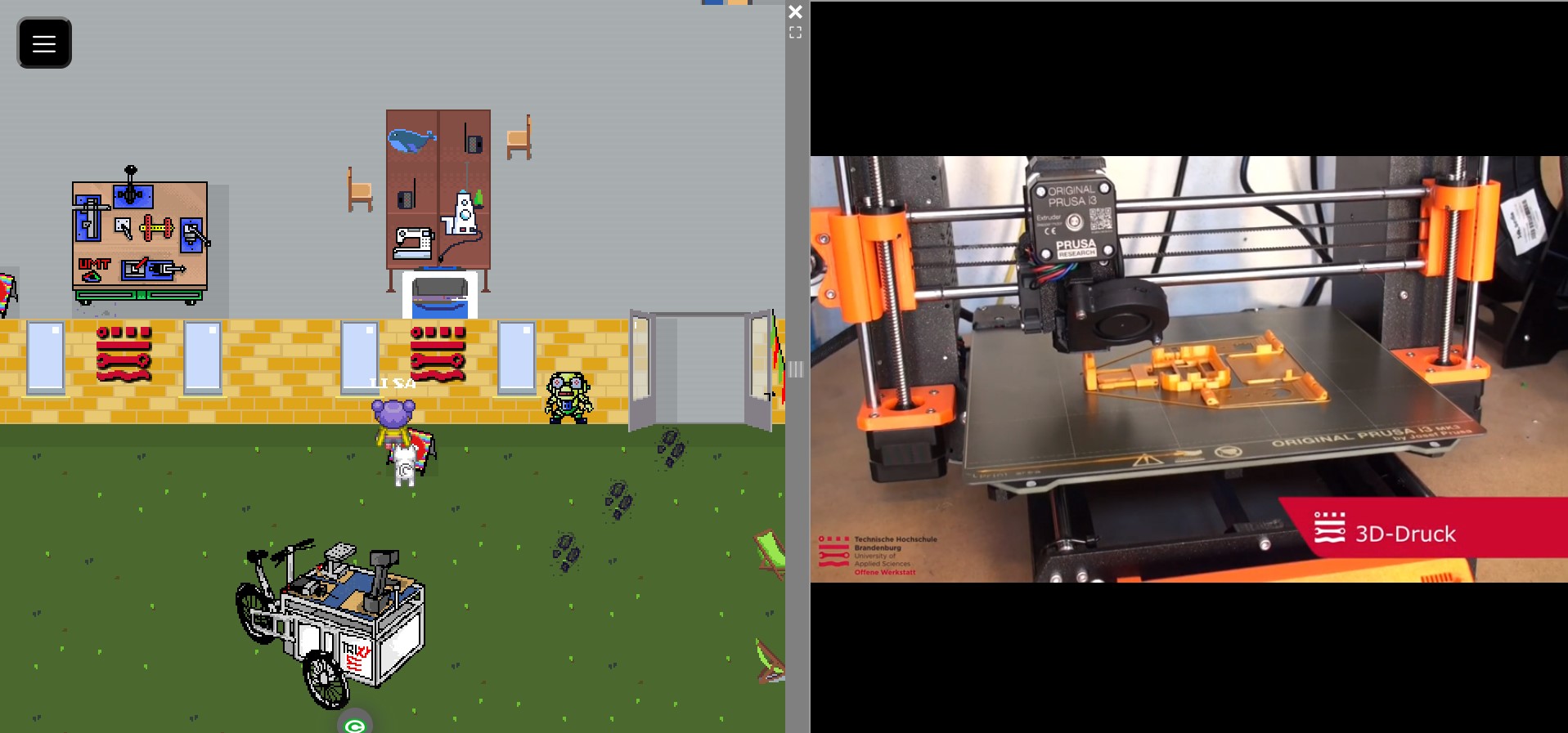 Erlebt die Offene Werkstatt in 2D! Besucht uns in der Pixelwelt!