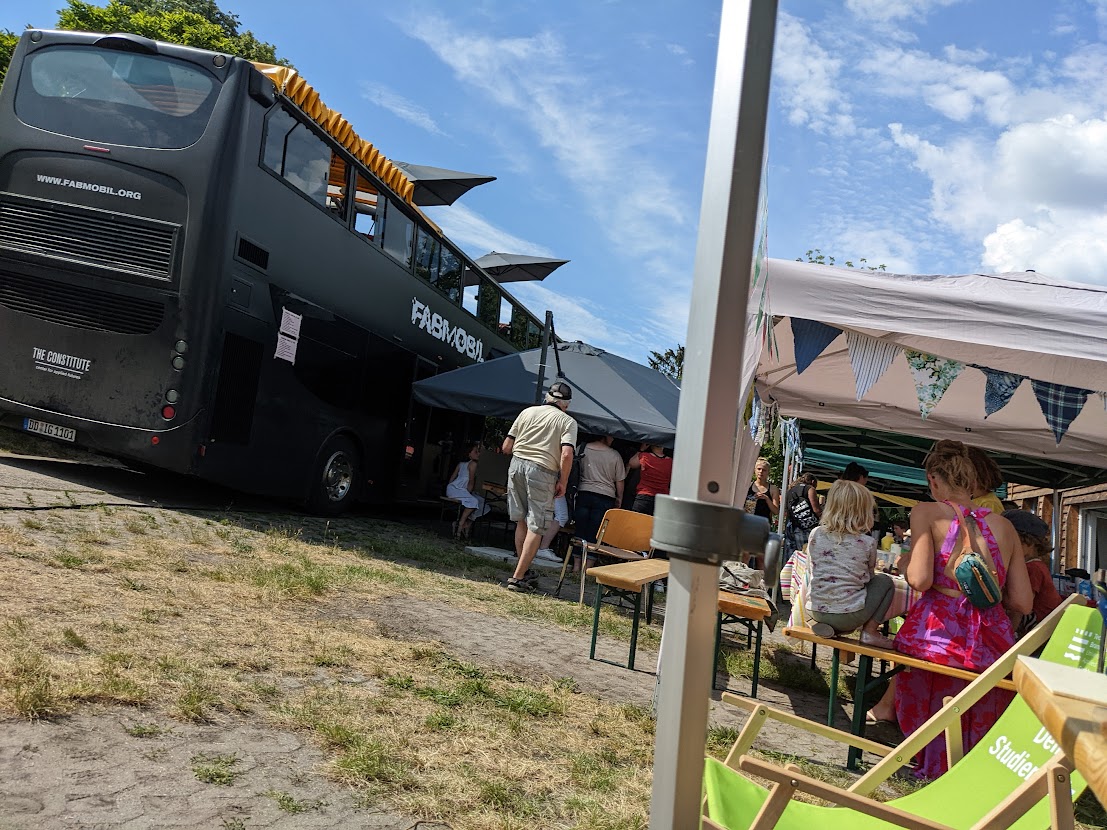 Das FABMOBIL ist ein Doppeldeckerbus ausgestattet mit modernen Technologien, wie 3D-Drucker, Lasercutter, CNC-Fräse, Robotik und Virtual Reality. Begleitend dazu öffnete die Klimawerkstatt ihre Werkstätten Holz, Elektro und Textil.