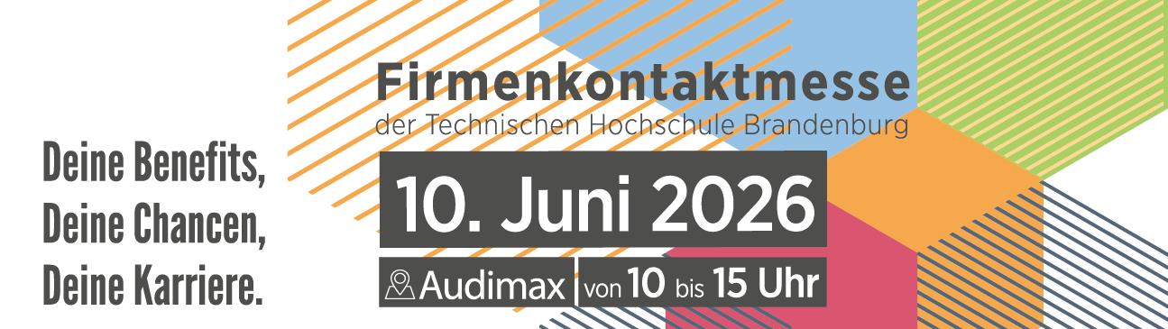 Am 10. Juni 2026 ist es wieder so weit: Die Firmenkontaktmesse der TH Brandenburg bringt Dich direkt mit spannenden Unternehmen und Organisationen in Kontakt! Ob Praktikum, Werkstudium, Abschlussarbeit oder Berufseinstieg – hier hast Du die Chance, erste Gespräche zu führen, Karrierewege kennenzulernen und wertvolle Kontakte zu knüpfen. Ohne Anmeldung – einfach vorbeikommen!