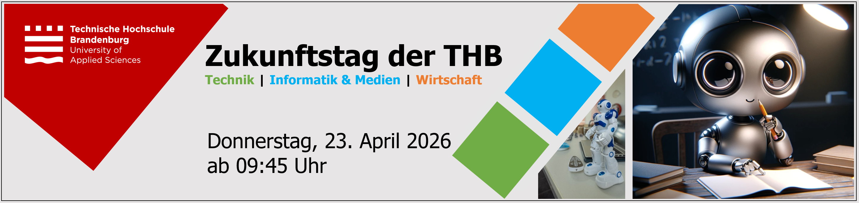 Schülerinnen und Schüler ab Jahrgangsstufe 7 können sich für den jährlichen Zukunftstag an der Technischen Hochschule Brandenburg anmelden. Aus Datenschutzgründen ist eine Anmeldung nur über das Portal "Zukunftstag Brandenburg" möglich. Bitte sucht dafür die folgende Webseite auf und gebt in dem Suchefeld "Technische Hochschule Brandenburg" ein. Die Anmeldung ist unter folgendem Link möglich: